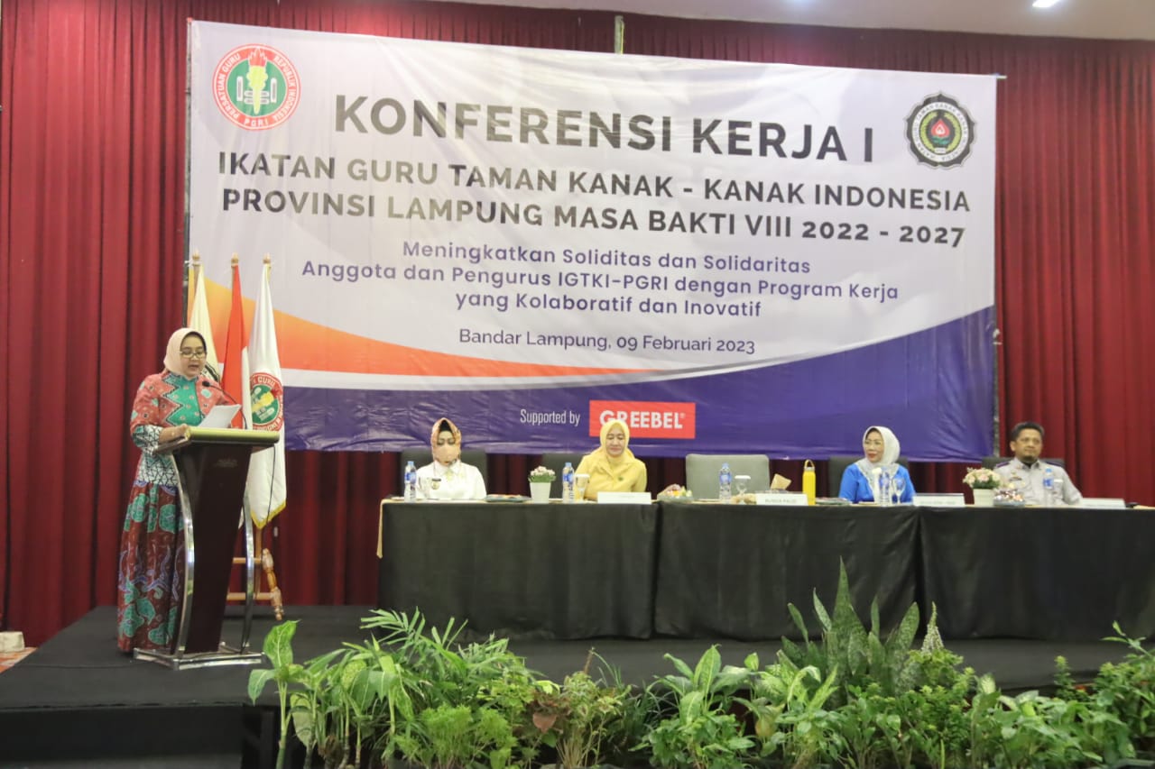 Dalam acara Konkerprov yang mengusung tema “Meningkatkan soliditas dan solidaritas anggota dan pengurus IGTKI-PGRI dengan program kerja yang kolaboratif dan inovatif”, Riana Sari Arinal menyampaikan bahwa IGTKI-PGRI merupakan organisasi mitra kerja Pemerintah dan Bunda PAUD dalam mewujudkan generasi penerus yang cerdas, sehat dan berakhlak baik.