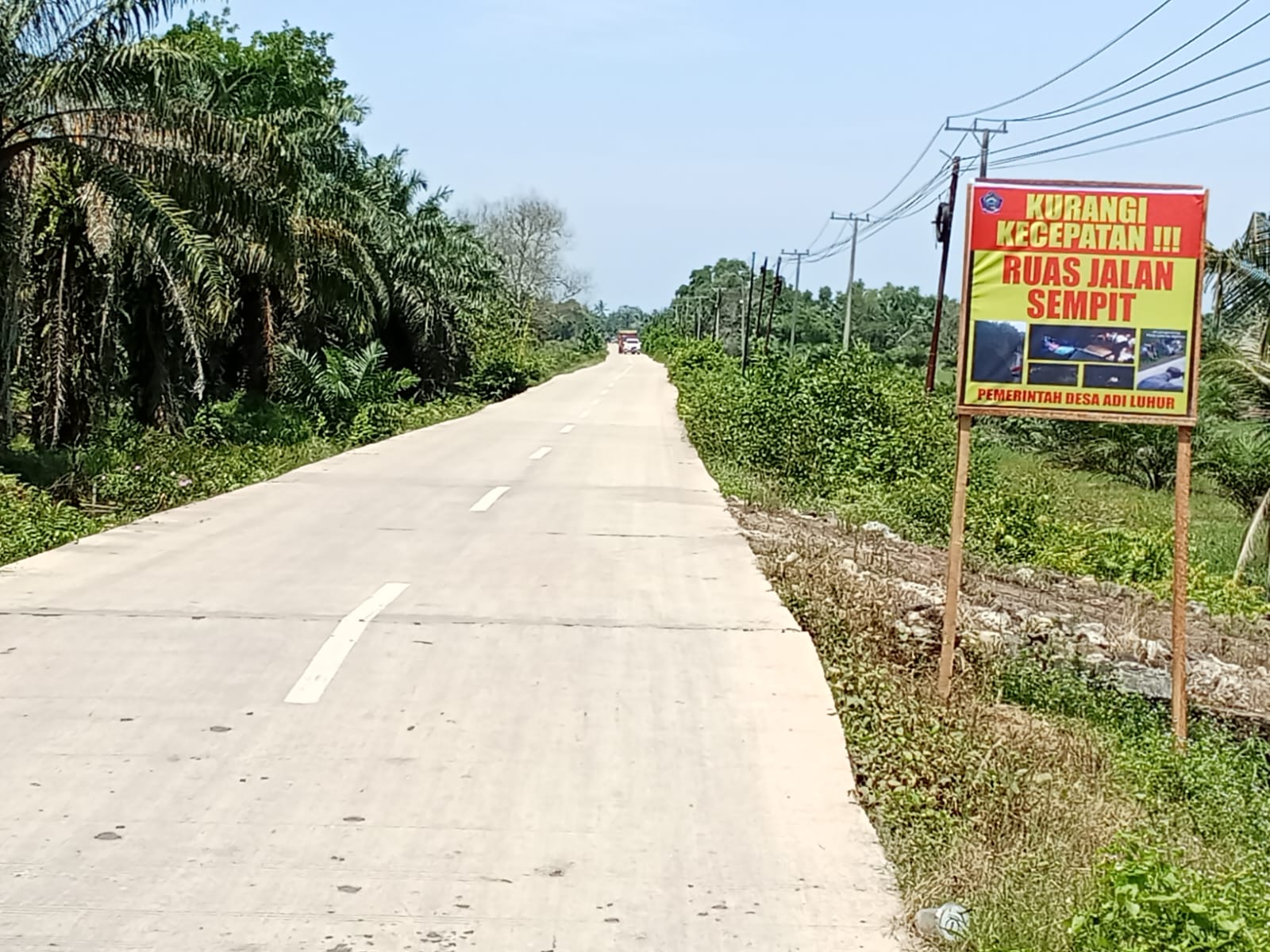 Kepala Desa Adi Luhur, Agus Pujianto, menuturkan bahwa meski bersyukur atas pembangunan jalan tersebut, kondisi di lapangan justru menimbulkan masalah baru. Jalan yang berdiri di atas tanah rawa gambut dengan lebar hanya 4 meter kerap memicu kecelakaan, terutama di malam hari.