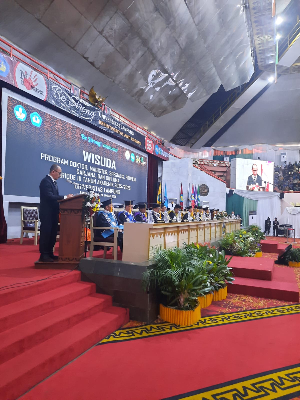 BANDAR LAMPUNG – Momentum Wisuda Universitas Lampung (Unila) menjadi ruang refleksi mendalam ketika perwakilan Ketua Umum Ikatan Keluarga Alumni Universitas Lampung (IKA Unila), Subari Kurniawan, SH., MH., menyampaikan sambutan yang menekankan pentingnya integritas dan keberanian moral sebagai fondasi utama seorang sarjana.