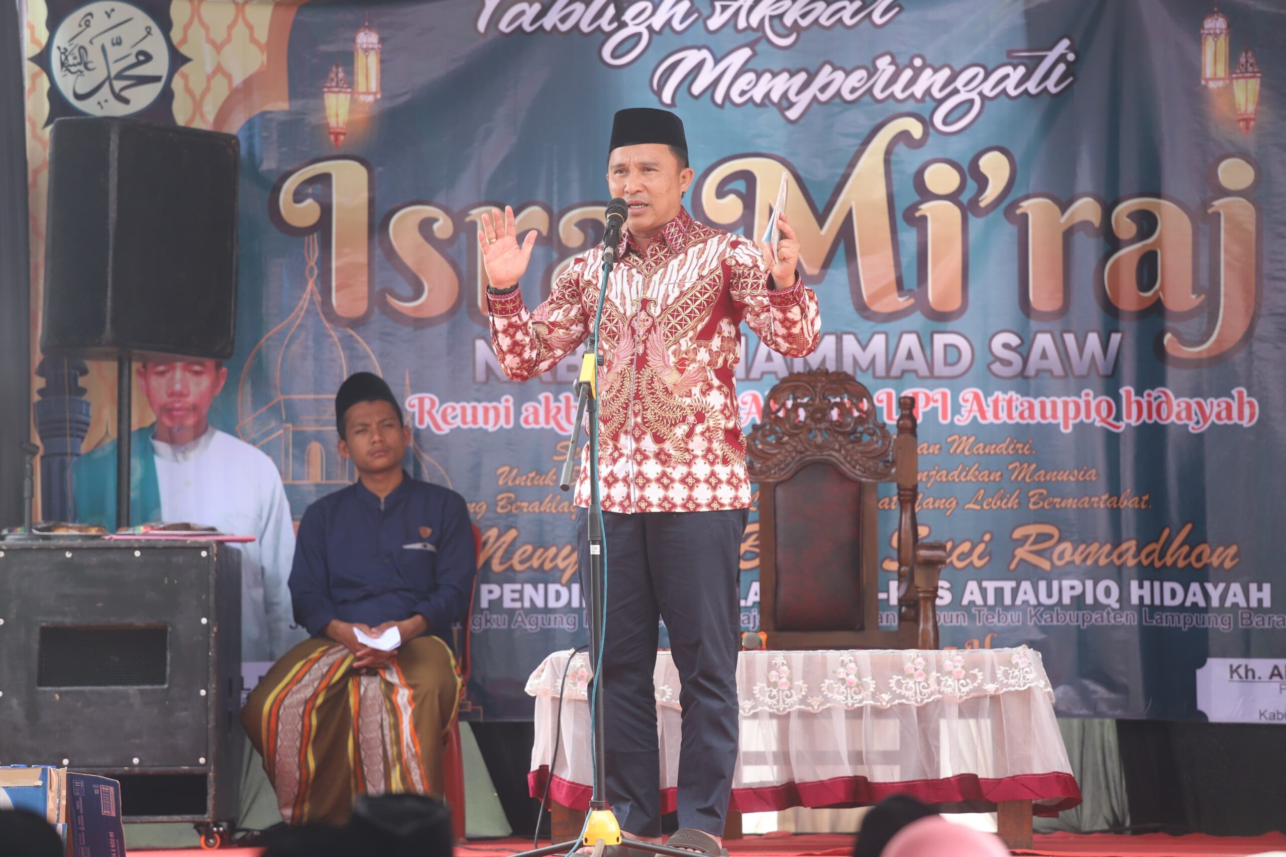 Hal tersebut disampaikan Parosil saat menghadiri Tabligh Akbar dalam rangka memperingati Isra Mi’raj Nabi Muhammad SAW 1447 Hijriyah dan Reuni Akbar Kedua Alumni Lembaga Pendidikan Islam (LPI) At-Taufiq Hidayah, sekaligus doa bersama menyambut bulan suci Ramadhan, di Pondok Pesantren At-Taufiq Hidayah, Pekon Pura Jaya, Kecamatan Kebun Tebu, Sabtu (31/1/2026).