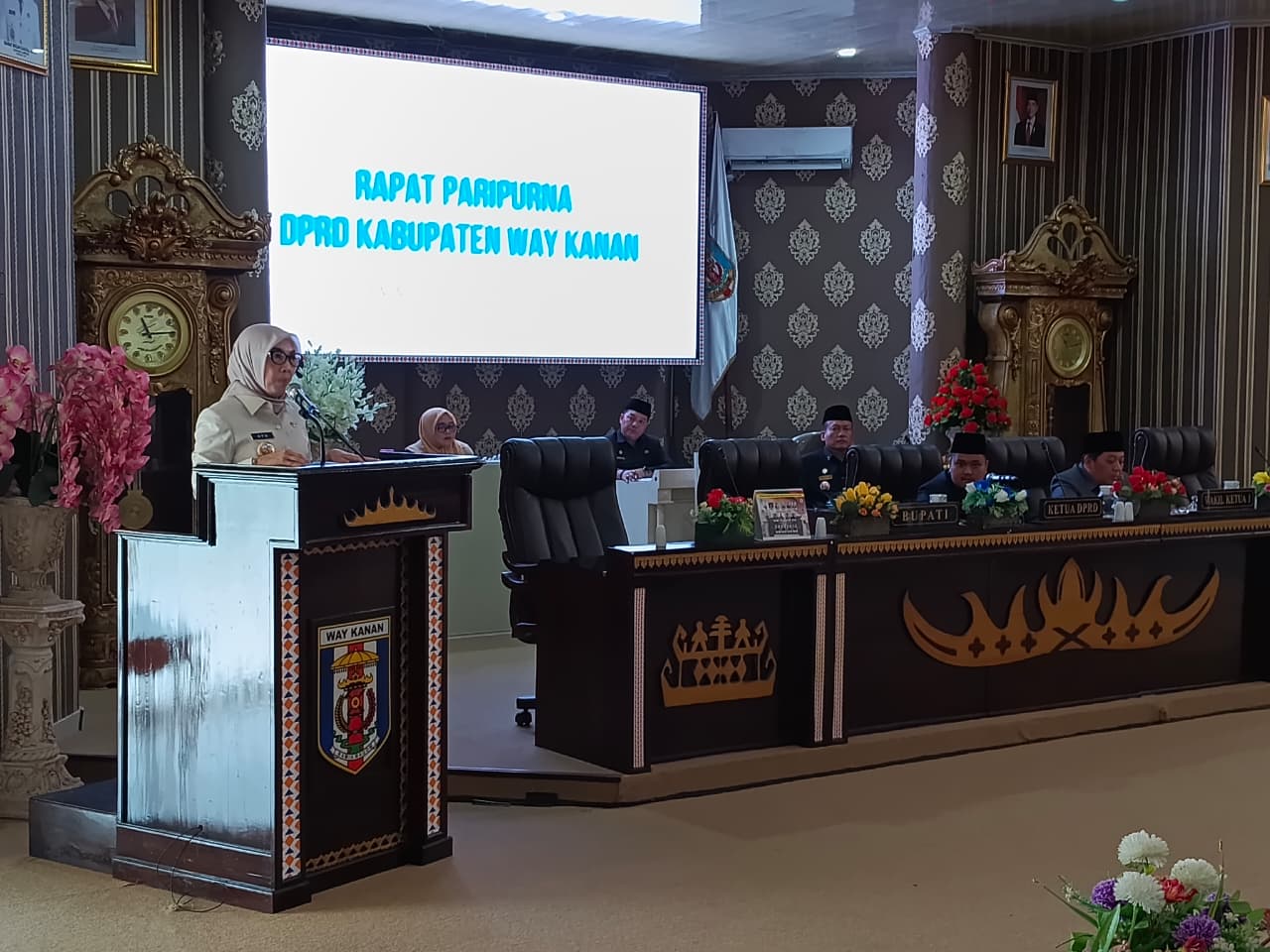 WAY KANAN – Bupati Way Kanan Ayu Asalasiyah, S.Ked., menghadiri Rapat Paripurna Penyampaian Laporan Keterangan Pertanggungjawaban (LKPJ) Kepala Daerah Tahun Anggaran 2025 di Kantor DPRD Kabupaten Way Kanan, Senin, (30/03/2026).